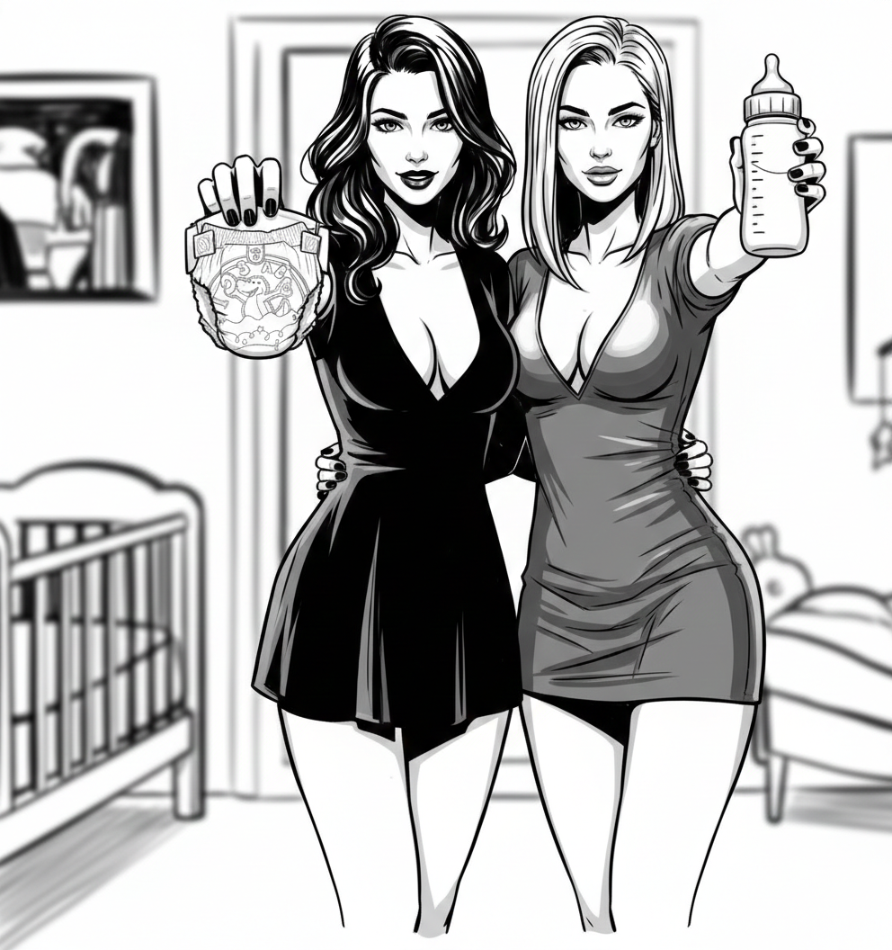 Todo era felicidad hasta que empecé a sentir unas ganas incontrolables de defecar, la chica de seguro se dio cuenta, pues inmediatamente empezó a hacerme cosquillas en el abdomen, yo intente quitarme pero Nayeli se le unió y en un par de segundos ya había perdido la dignidad que tal vez aun me quedaba pese a estar vistiendo solamente con un pañal y un babero manchado de papilla de zanahoria rodeándome el cuello, se me había escapado un buen mojón dentro de pañal y un gran chorro de orina también, casi sin poder controlarlo, como un auténtico bebé. Estoy seguro de que le pusieron algo a la papilla o a la leche.